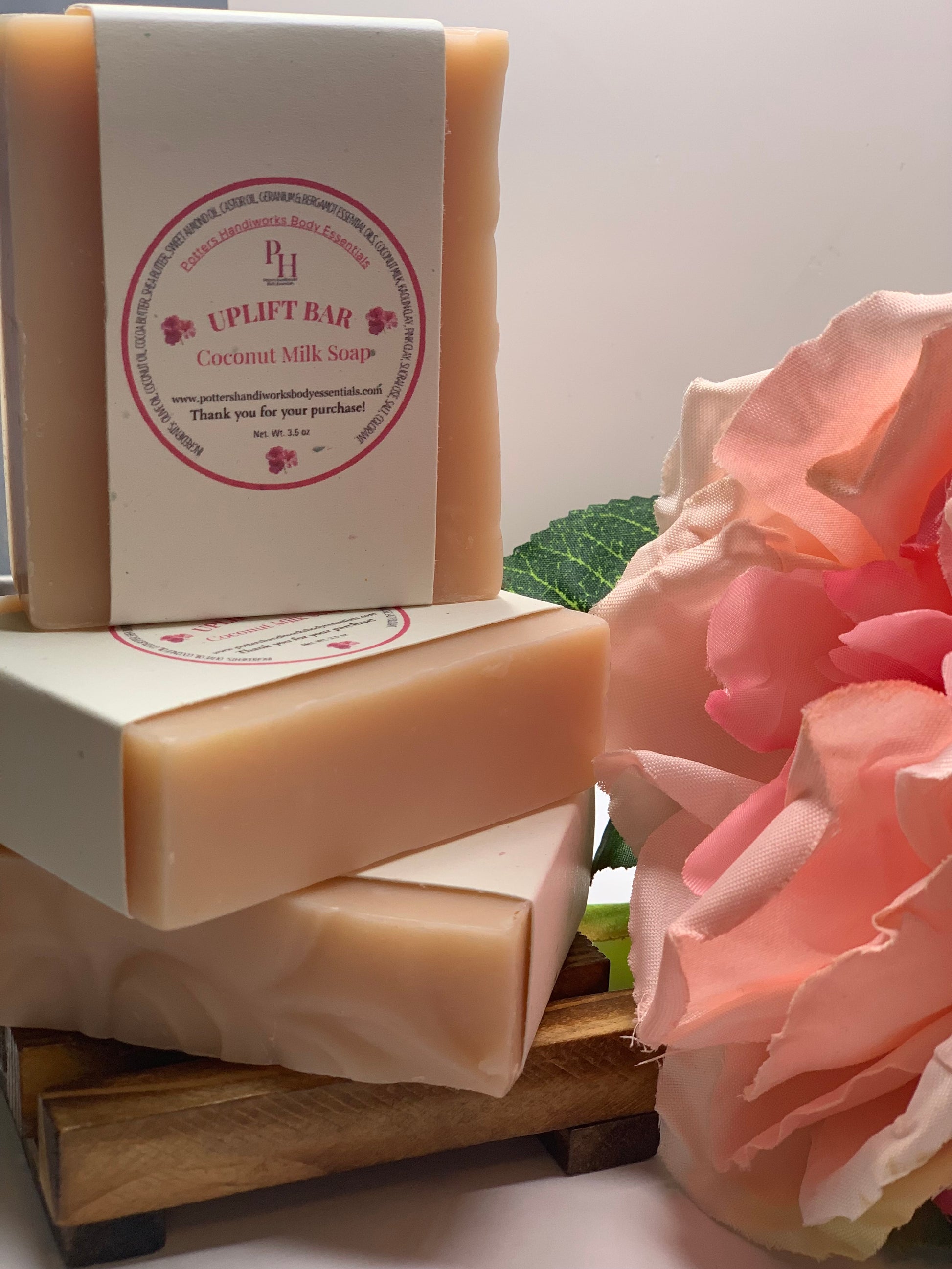 Ingredients: Olive Oil, Coconut Oil, Cocoa Butter, Shea Butter, Castor Oil, Sweet Almond Oil, Coconut Milk, Bergamot Essential Oil, Geranium Essential Oil, Pink Clay, Sugar, Salt.